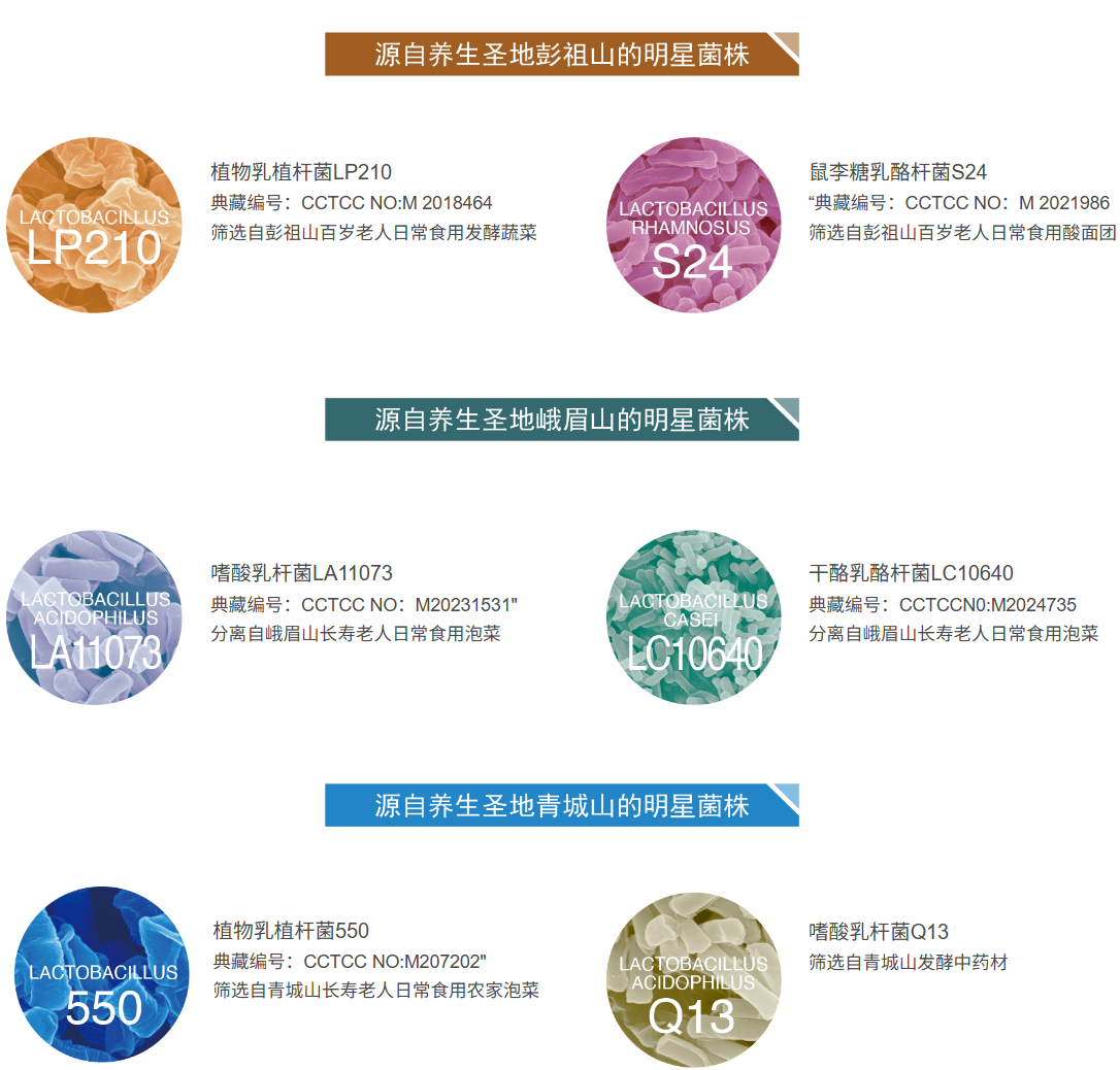 高福记植物源益生菌精选自中国长寿康养圣地青城山、彭祖山、峨眉山、长白山等地,以及中国传统发酵食品郫县豆瓣、四川泡菜、发酵中药材等,经过严格安全性评价,有着良好的常温保存性能、耐高温、耐胃酸、耐胆盐和优良的肠道定植能力。
